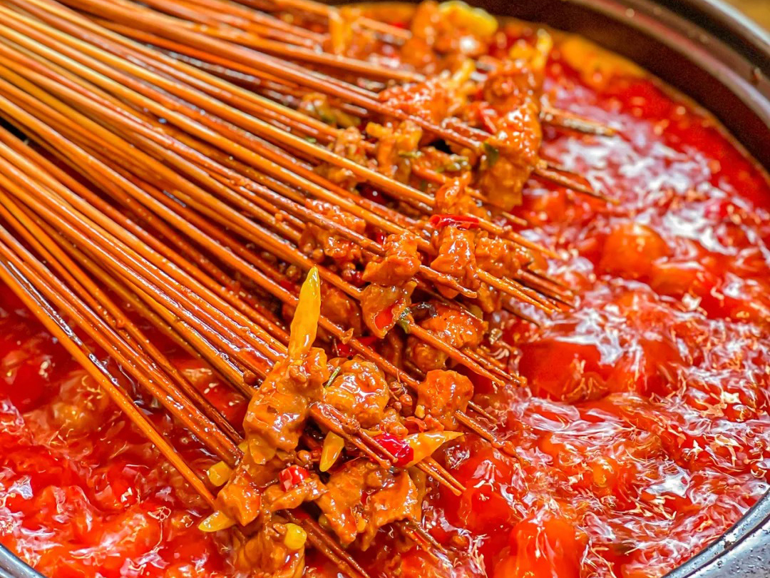 签年时光鲜切牛肉串串香的核心竞争力,在于对 “鲜” 的极致追求,这也是它区别于其他品牌的关键。品牌坚持 “每日鲜切、现穿现卖”,精选 3-5 岁的散养黄牛肉,从屠宰到门店穿串不超过 6 小时,每一串牛肉都带着细腻的纹理和浓郁的肉香。无论是经典的麻辣牛肉、黑胡椒牛肉,还是创新的藤椒牛肉、贡菜牛肉,咬下的瞬间都能感受到肉质的鲜嫩弹牙,这种 “看得见的新鲜” 不仅征服了消费者的味蕾,更让门店拥有了稳定的复购率。对比许多依赖冻品的品牌,签年时光鲜切牛肉串串香用品质筑起了竞争壁垒,也为加盟商带来了 “产品自带流量” 的优势。